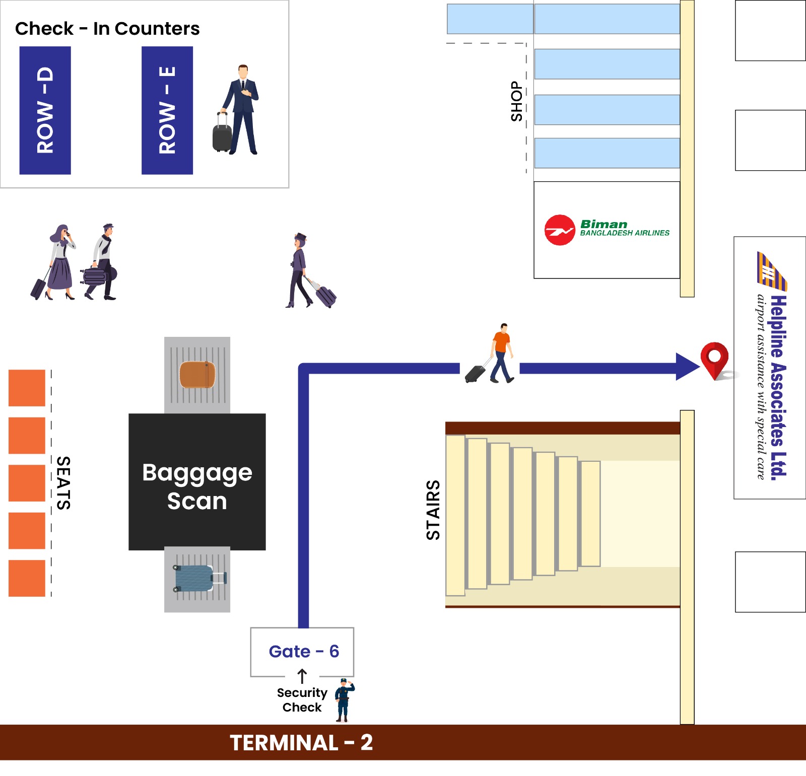 Ans : Helpline Associates provides passenger meet and assist services. Our team assists you with security check -in, immigration, baggage handling, on-arrival visa and vip services till the boarding gates for the departing passengers.